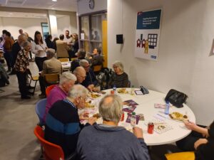 Onder het genot van een hapje (van John van John’s Kitchen) en een drankje, kon iedereen met elkaar praten en gedachten uitwisselen.